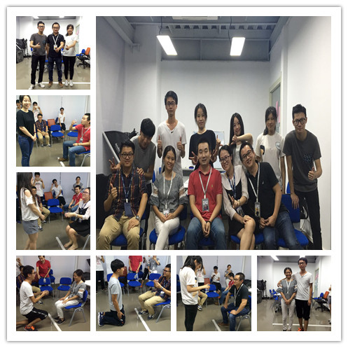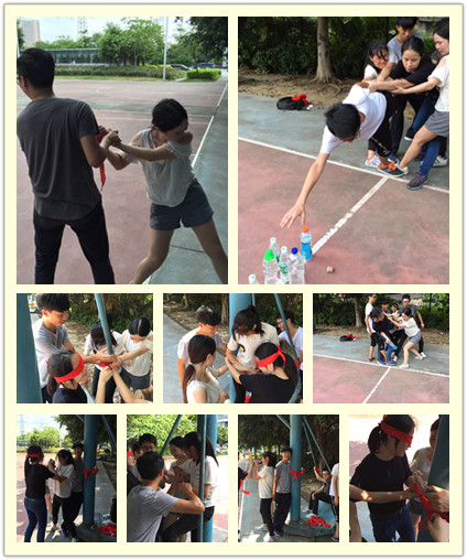 一個盲人三角,群龍取水的游戲,讓他們找過團隊合作的默契.