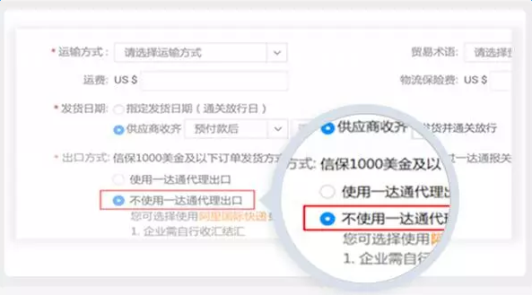 起草訂單總價(jià)在1000美金及以下訂單時(shí),供應(yīng)商可選擇不使用一達(dá)通代理出口。